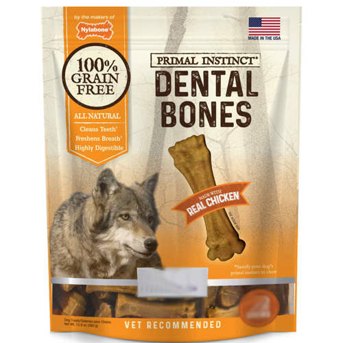 NYLABONE PRIMAL INSTINCT DENTAL BONES REAL CHICKEN REGULAR DOGS 15-30 LBS 10 CHEWS GRAIN FREE DE 7.5 OZ
