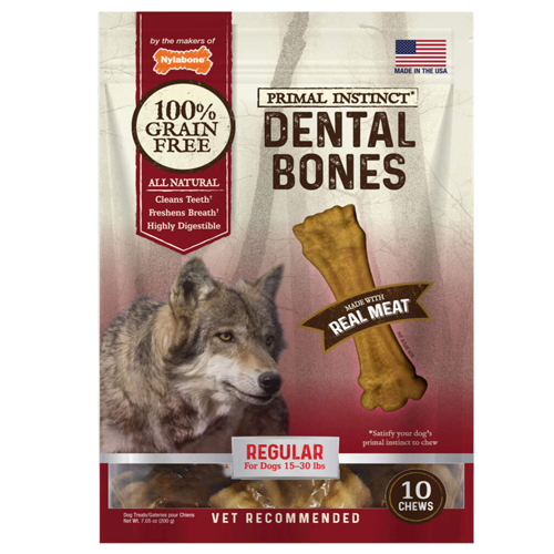 NYLABONE PRIMAL INSTINC DENTAL BONES REAL MEAT REGULAR FOR DOGS 15-30 LBS 10 CHEW GRAIN FREE 7.05 OZ