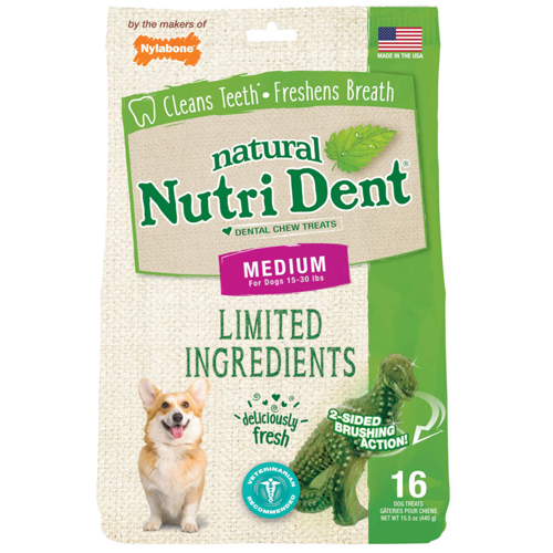 NYLABONE NUTRI DENT FRESH BREATH MEDIUM FOR DOGS 15-30 LBS PACK DE 16 UNIDADES