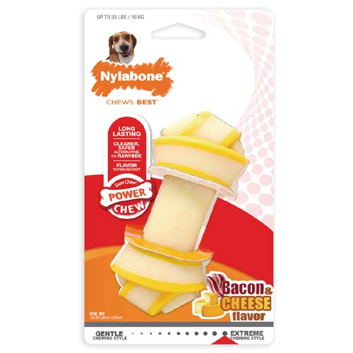 NYLABONE POWER CHEW RAWHIDE KNOT WOLF BONE BACON & CHICKEN FLAVOR
