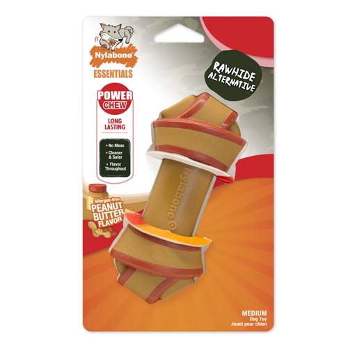NYLABONE POWER CHEW RAWHIDE ALTERNATIVE PEANUT BUTTER FLAVOR KNOT BONE MEDIUM